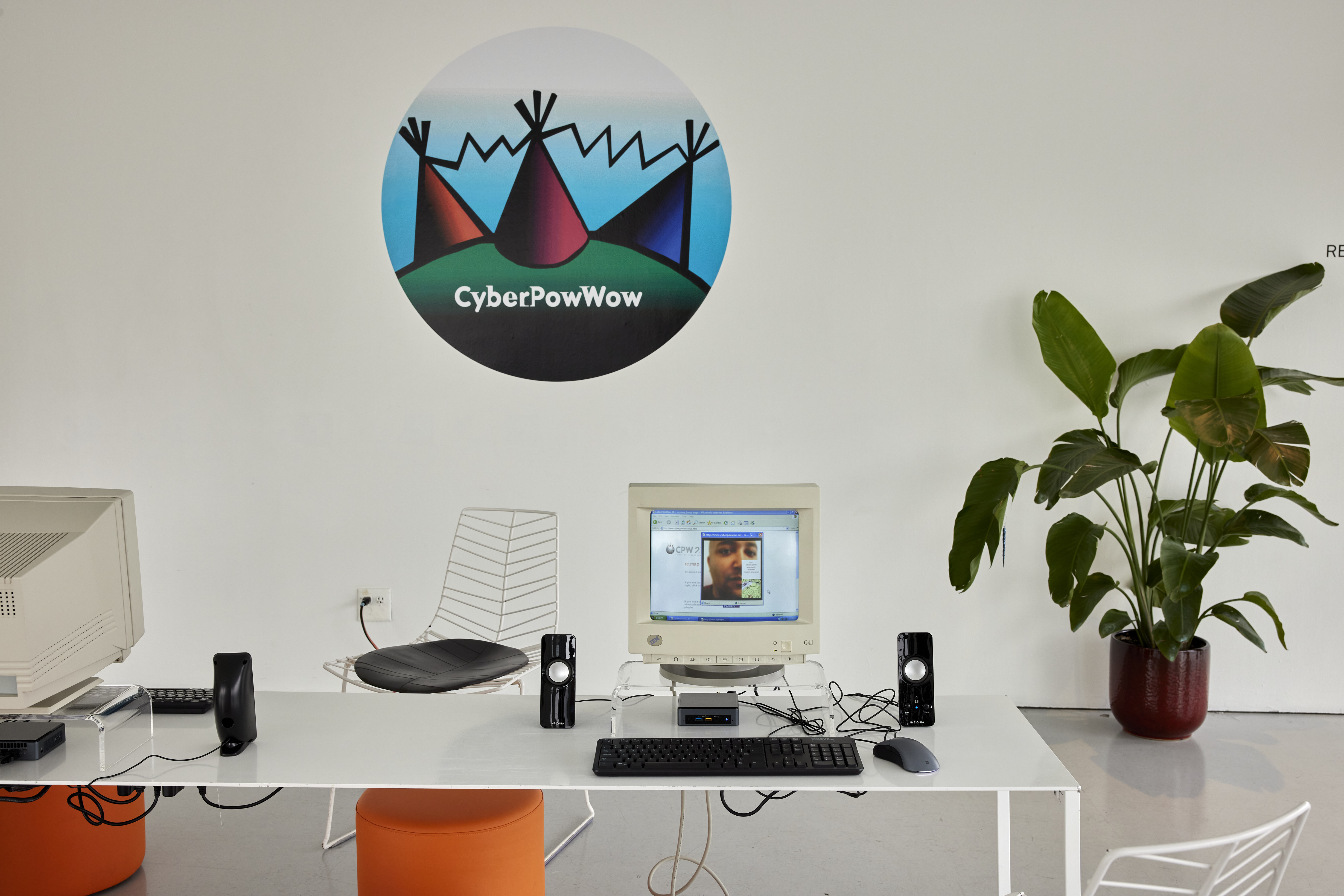 Rhizome Presents: CyberPowWow is a restaging of one of the first major online exhibitions, a project that was first launched in 1997 by Nation to Nation, a First Nations artist collective co-founded by Skawennati, Ryan Rice, and Eric Robertson. Described as "an Aboriginally determined territory in cyberspace," CyberPowWow presented works by Indigenous artists—sometimes in dialogue with settler artists. This presentation took place at the New Museum in New York City, which sits on unceded Indigenous land, specifically the homeland of the Lenape peoples.
