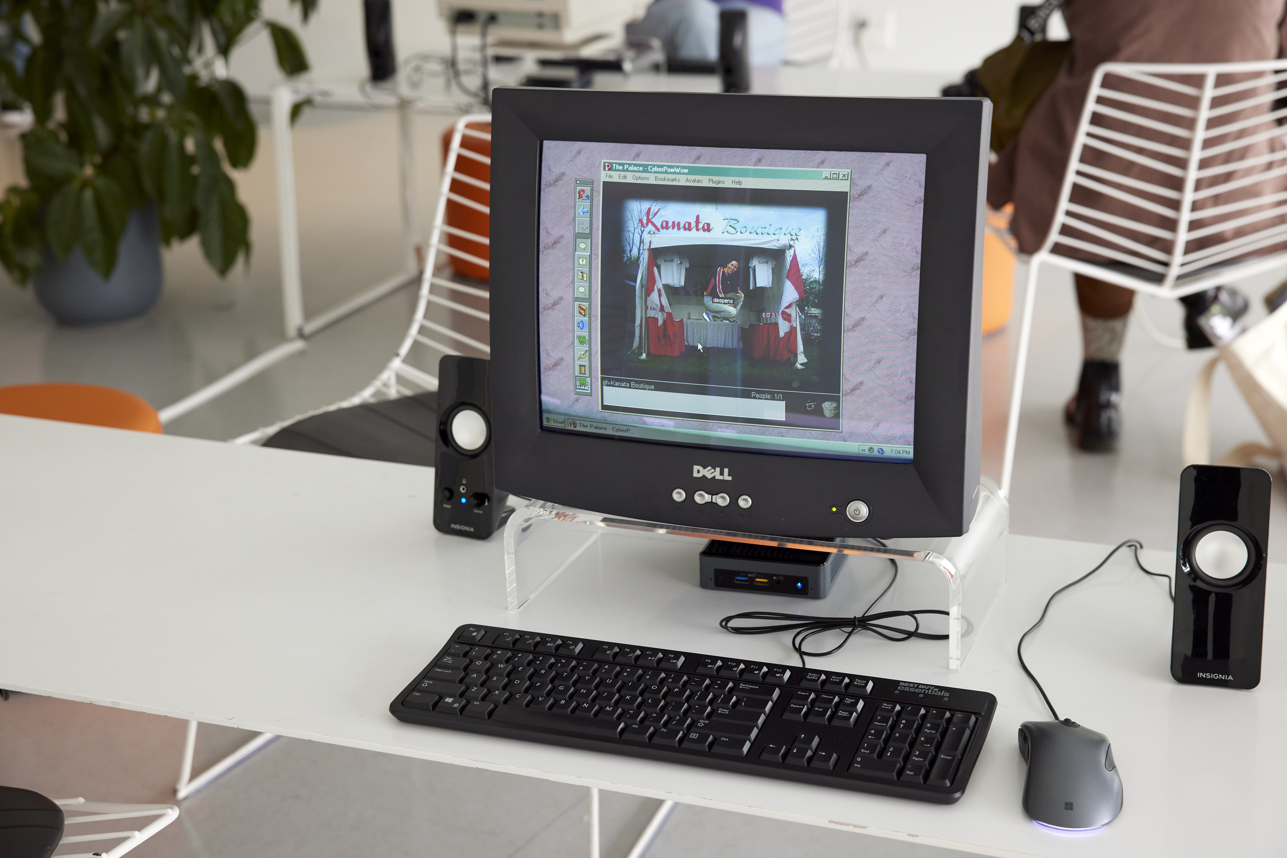 Rhizome Presents: CyberPowWow utilizes legacy computer environments to display restored versions of the four roughly biennial exhibitions as well as ephemera from the Indigenous Art Archive, video documentation of the works, and a remake of the CyberPowWow logo illustration. In the spirit of CyberPowWow's in-person community gatherings of that time, the freshly restored versions were shown alongside potted plants, with food and drink to share as viewers experienced CyberPowWow together again. Today, CyberPowWow is ripe for reconsideration as an early example of Skawennati and her collaborators' vision for an Indigenous future.